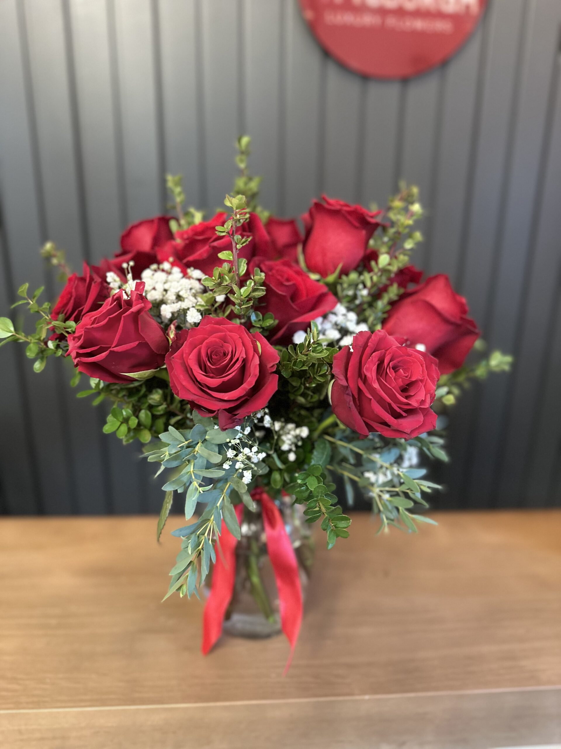 Celebrate life’s special moments with timeless elegance. Our Rose Basket features 12 fresh, hand-selected stem roses paired with fragrant eucalyptus and baby breath, arranged in clear glass vase . Perfect for anniversaries, birthdays, Mother’s Day, Valentine’s Day, or simply to brighten someone’s day.