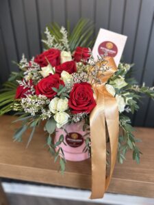 Soft, romantic, and full of charm, the Blush Harmony Bouquet is the perfect expression of love and elegance. Featuring a graceful mix of roses, carnations, chrysanthemums, and baby’s breath, this hand-crafted arrangement is beautifully presented in a modern box with wet foam to keep blooms fresh—no water needed. Ideal for anniversaries, birthdays, Mother’s Day, Valentine’s Day, or any heartfelt moment, it’s a gift that speaks volumes without saying a word.